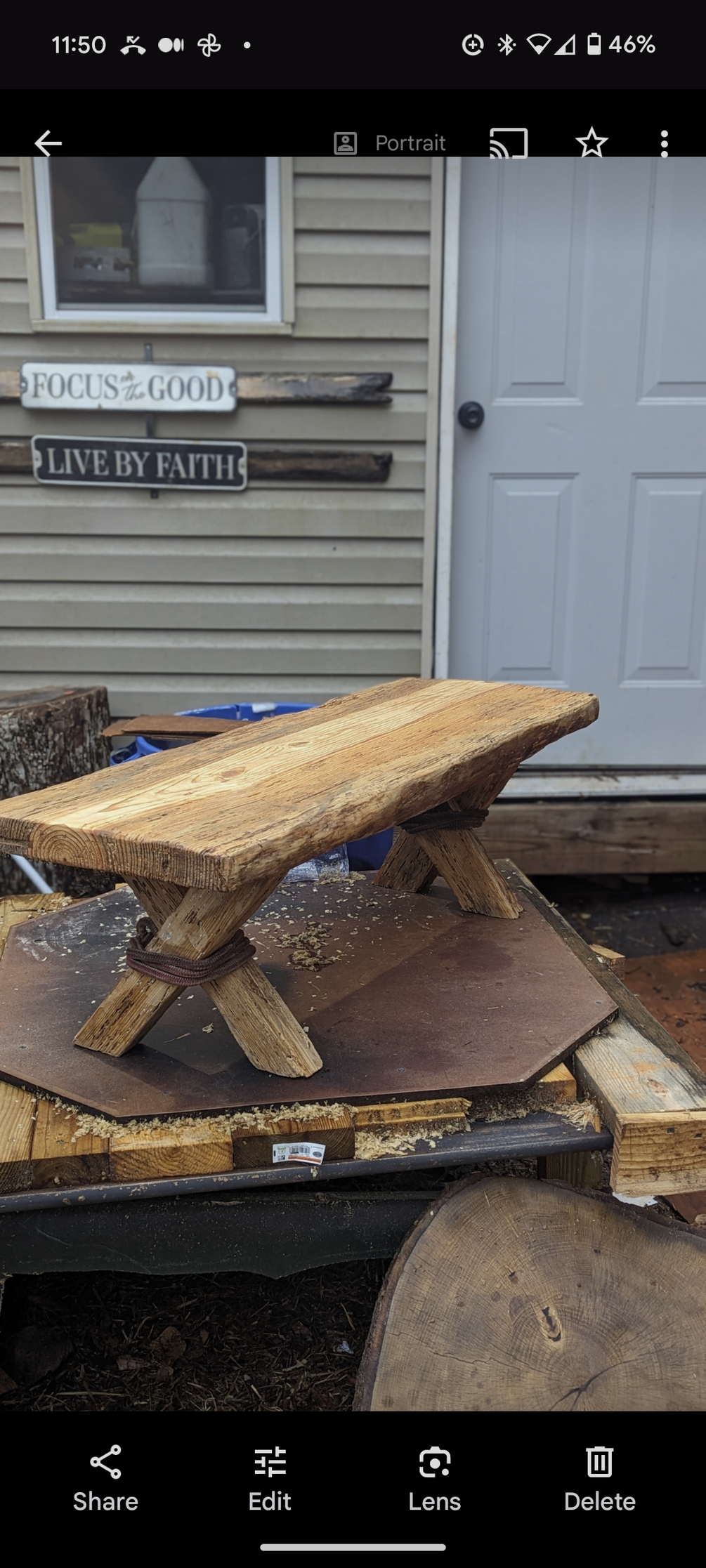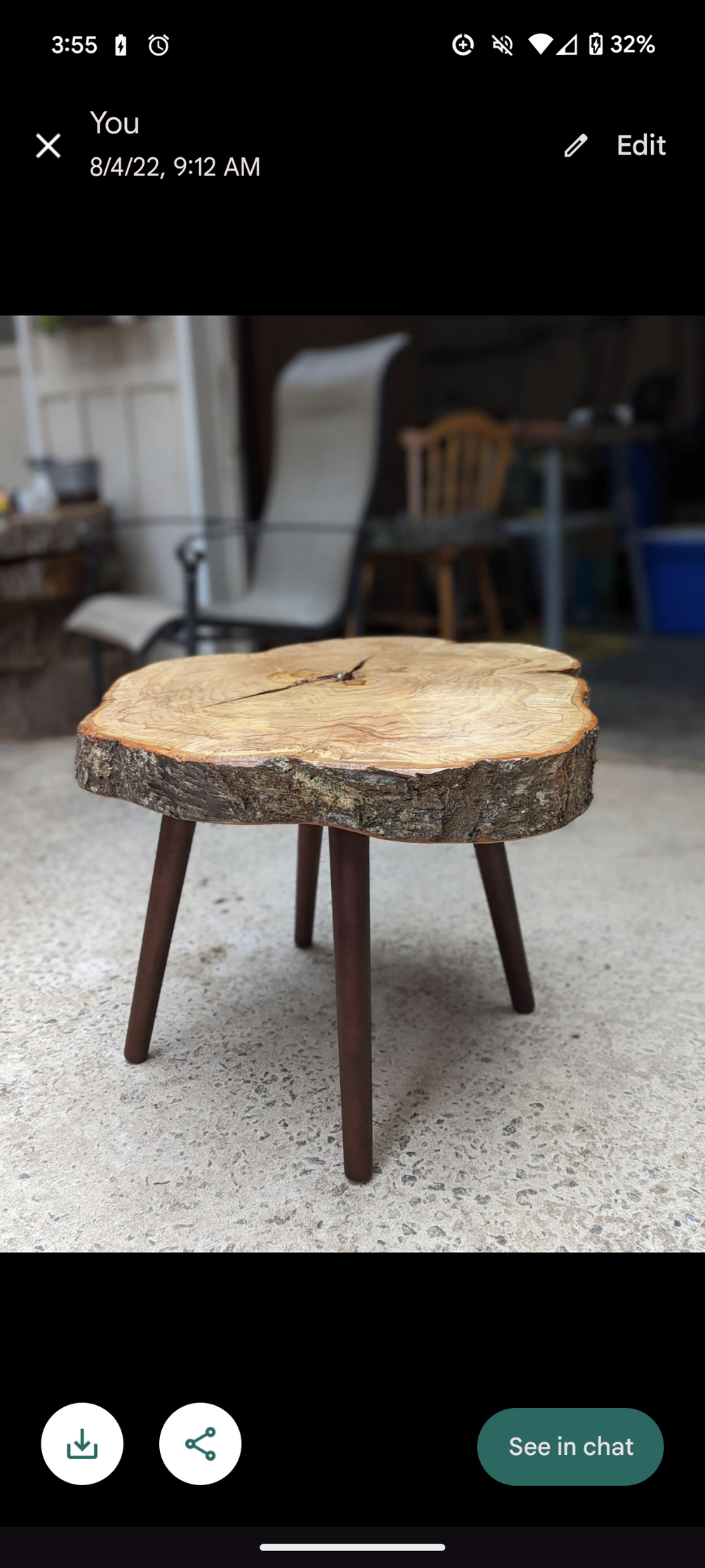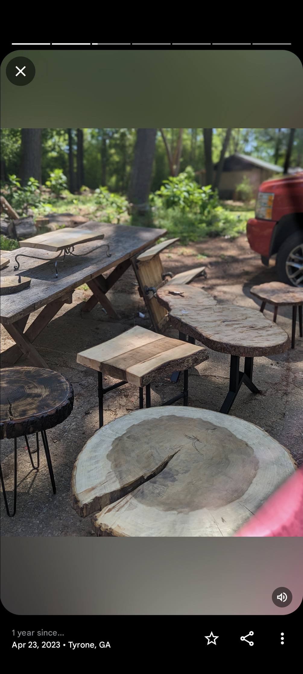 A live edge table, made from cedar, black walnut, oak, pecan, pine andore